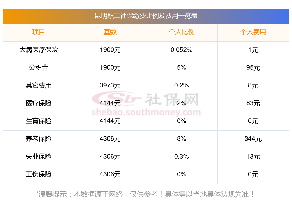 据新社通app显示,昆明社保缴费基数2023-2024年标准,(社保最低一个月要交多少钱)昆明社保费用如下: