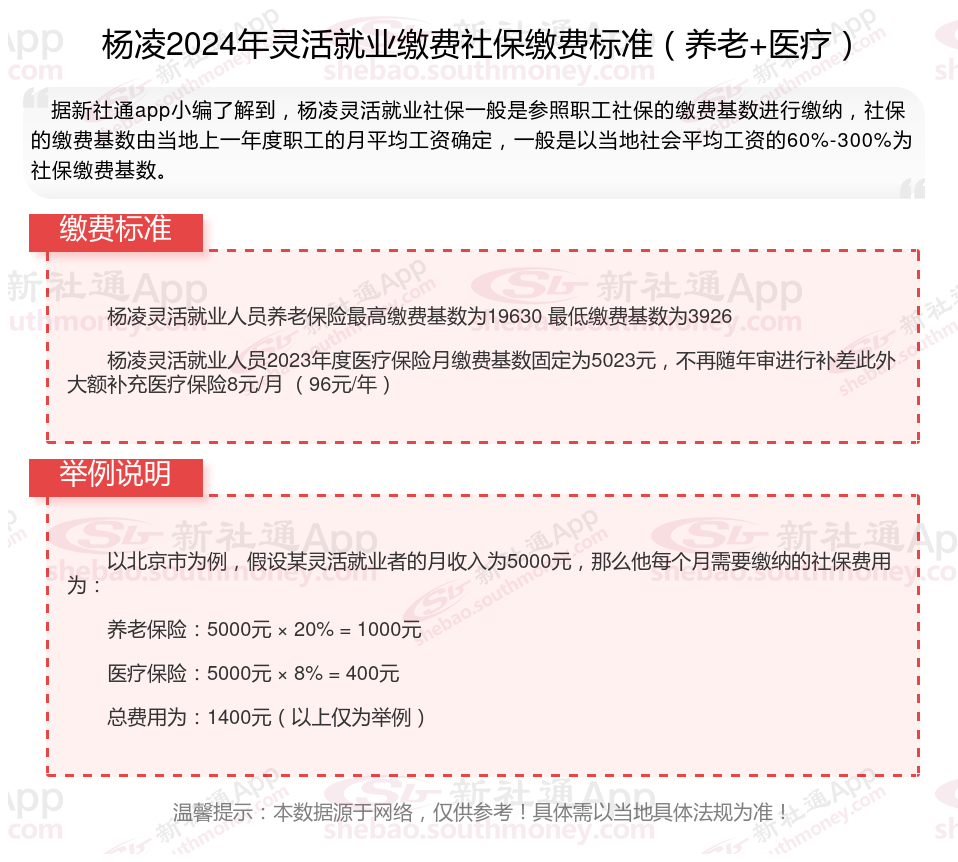 二、杨凌2024年灵活就业社保缴费基数、比例最新消息