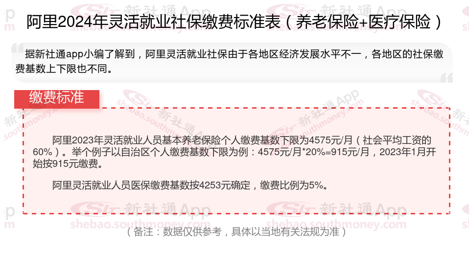 一、2024年阿里灵活就业社保缴费基数、比例最新消息