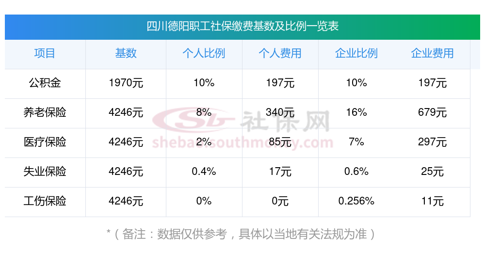 据新社通app小编了解,2023-2024年四川德阳社保缴费基数参照为3579.00,四川德阳社保最低一个月要交多少钱?如下: