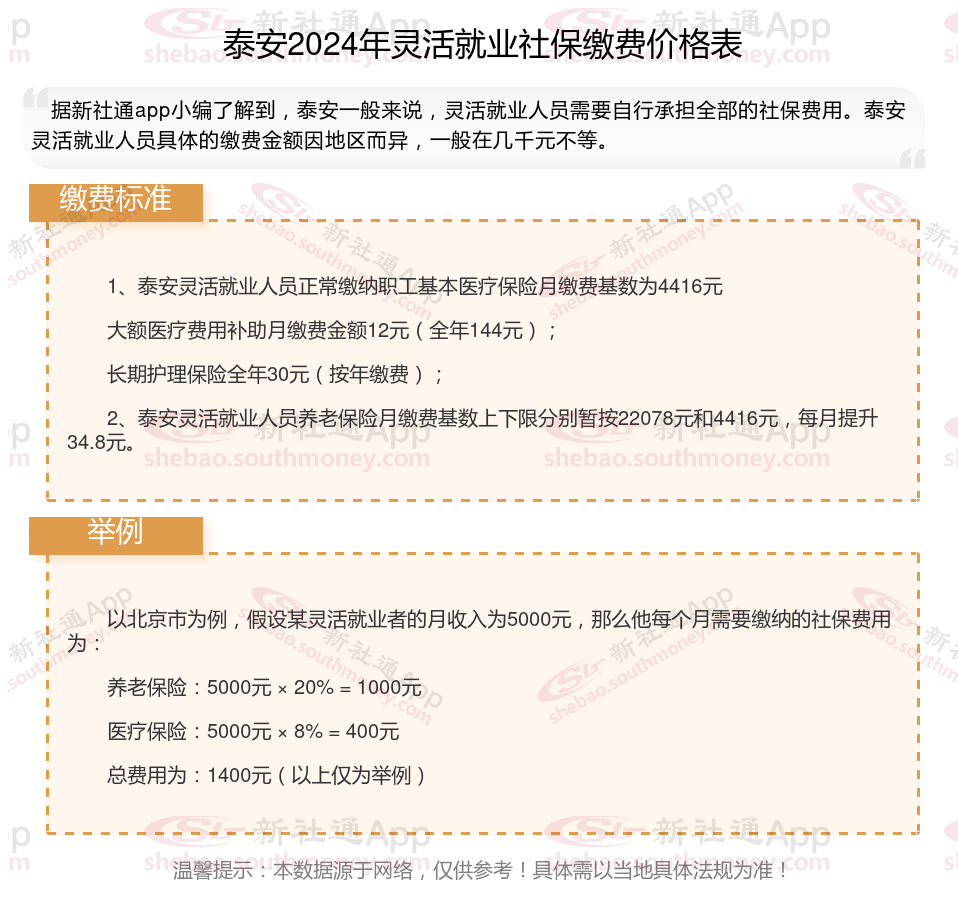 一、2024年泰安灵活就业社保缴费标准表 泰安灵活就业社保多少钱一个月?