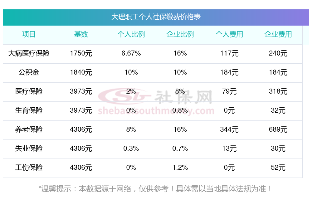 2024年大理社保缴费标准最新是多少?据新社通app获悉,社保是为了保证劳动者在年老、失业、患病、工伤、生育而减少劳动收入时给予经济补偿的一项优惠方案。那你知道大理社保缴费标准是什么样的吗?看看你的社保需要缴纳多少钱?下面随新社通app小编一起来看看大理社保缴费标准详情。