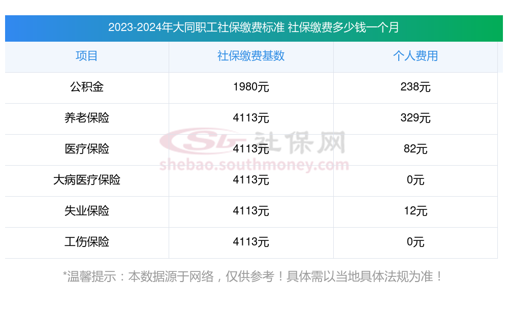 一、大同职工社保缴费基数是多少钱一个月?职工社保缴纳标准