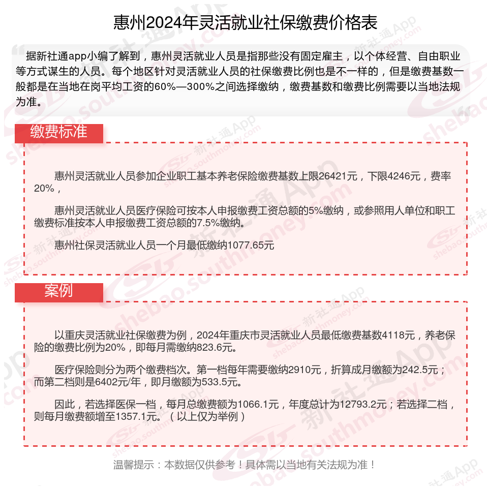 二、惠州2024年灵活就业社保缴费基数、比例最新消息