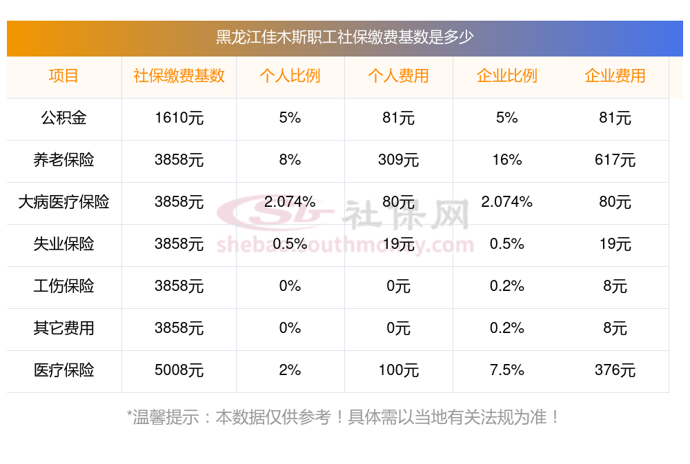 一、黑龙江佳木斯职工社保缴费基数是多少钱一个月?职工社保缴纳标准是多少?