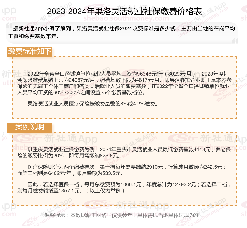 一、2024年果洛灵活就业社保缴费标准表 果洛灵活就业社保多少钱一个月?