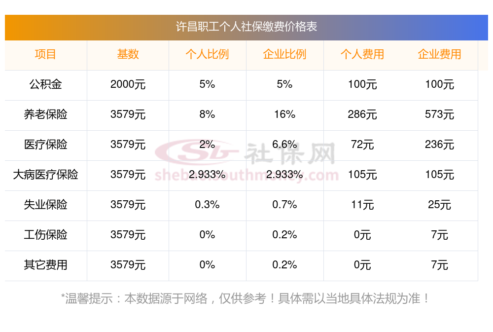 据新社通app显示,许昌社保缴费基数2023-2024年标准,(社保最低一个月要交多少钱)许昌社保费用如下: