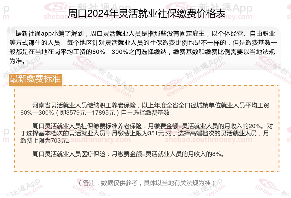 二、周口2024年灵活就业社保缴费基数、比例最新消息