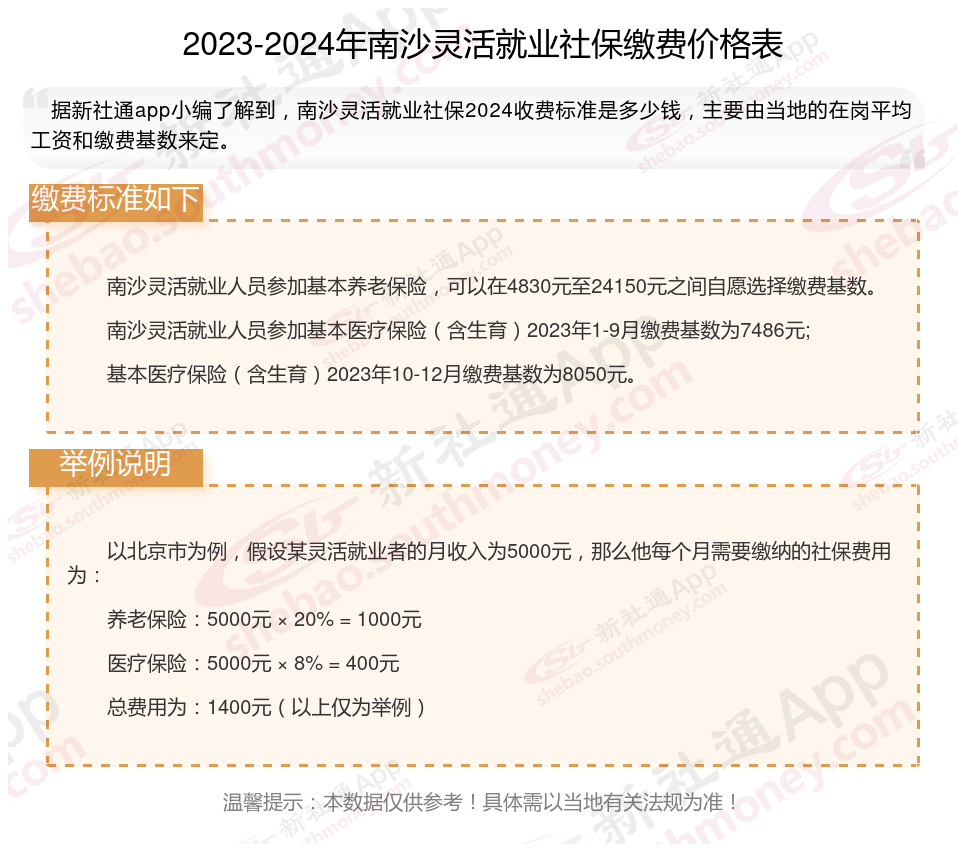 二、南沙2024年灵活就业社保缴费基数、比例最新消息