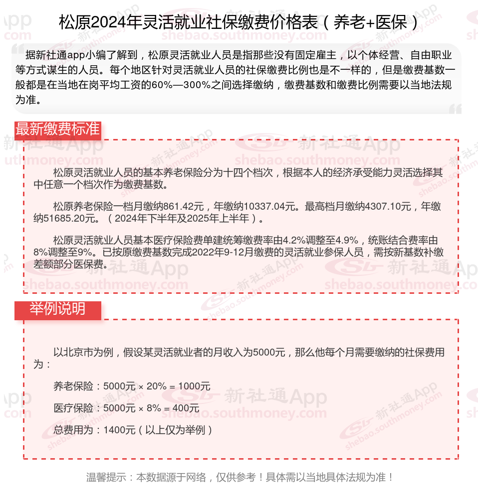 二、2024年松原灵活就业社保缴费标准,最新如下: