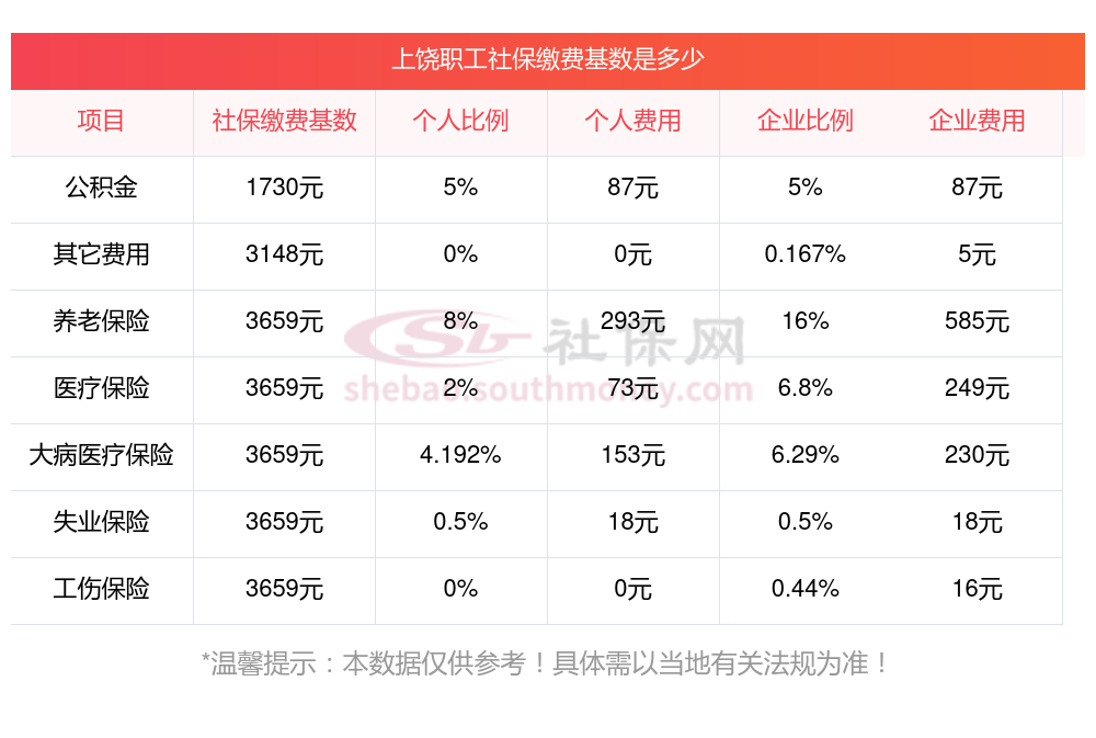 2024年上饶社保缴费标准最新是多少?据新社通app获悉,社保是为了保证劳动者在年老、失业、患病、工伤、生育而减少劳动收入时给予经济补偿的一项优惠方案。那你知道上饶社保缴费标准是什么样的吗?看看你的社保需要缴纳多少钱?下面随新社通app小编一起来看看上饶社保缴费标准详情。