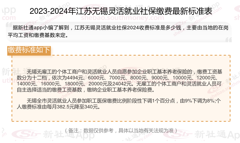 一、2024年江苏无锡灵活就业社保缴费标准表 江苏无锡灵活就业社保多少钱一个月?