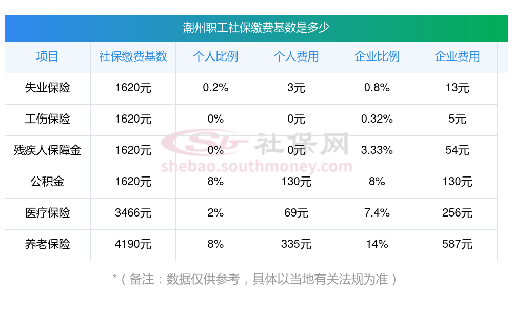 二、潮州职工社保缴费基数是多少钱一个月?职工社保缴纳标准是多少?