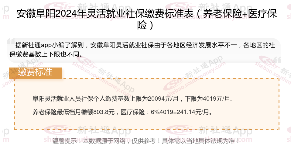 一、2024年安徽阜阳灵活就业社保缴费标准表 安徽阜阳灵活就业社保怎么交?