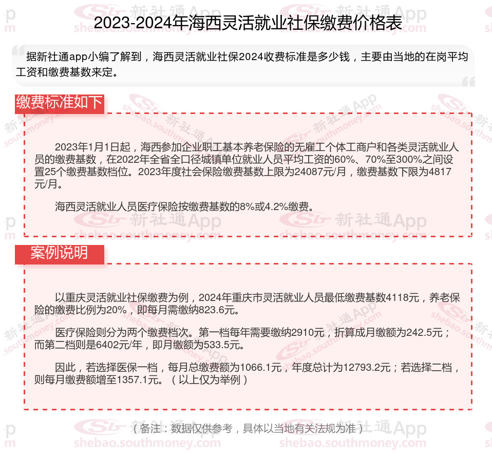一、2024年海西灵活就业社保缴费标准表 海西灵活就业社保多少钱一个月?