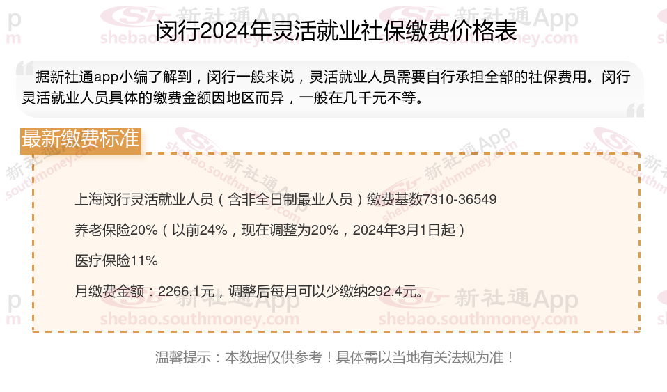 一、2024年闵行灵活就业社保缴费标准表 闵行灵活就业社保多少钱一个月?