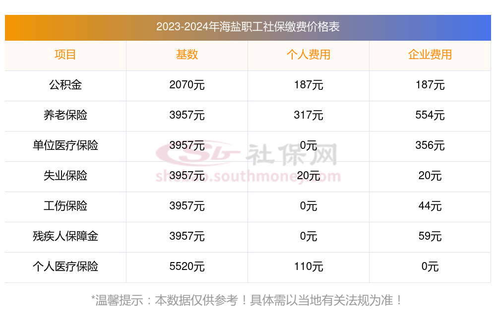 目前该海盐社保缴费基数最新参考为3579.00。(数据仅供参考)