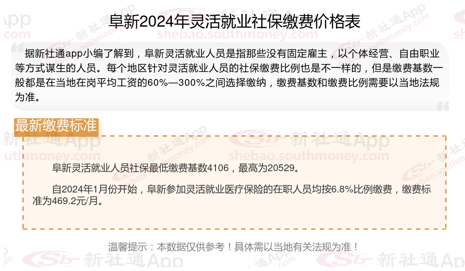 二、阜新2024年灵活就业社保缴费基数、比例最新消息
