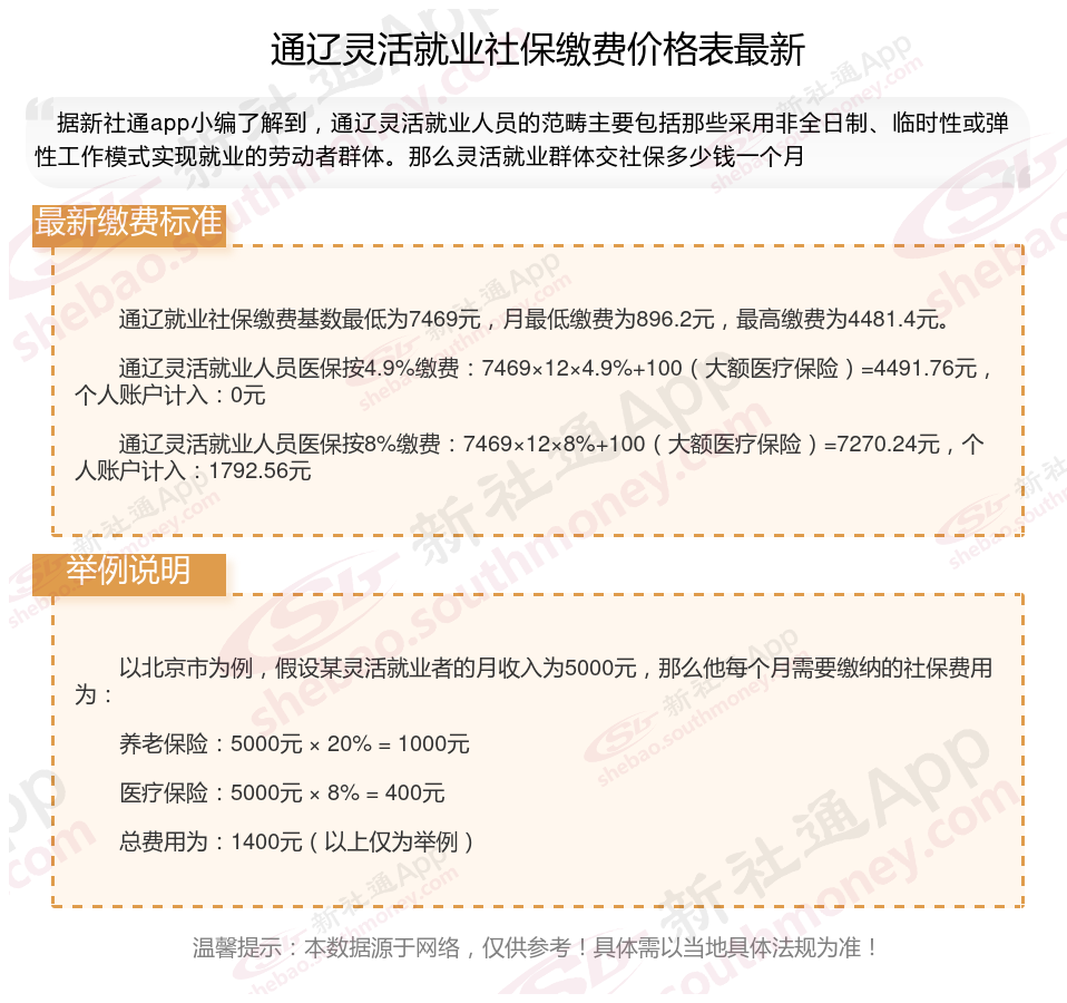 一、2024年通辽灵活就业社保缴费标准表 通辽灵活就业社保多少钱一个月?