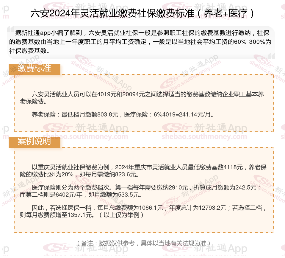 二、六安2024年灵活就业社保缴费基数、比例最新消息
