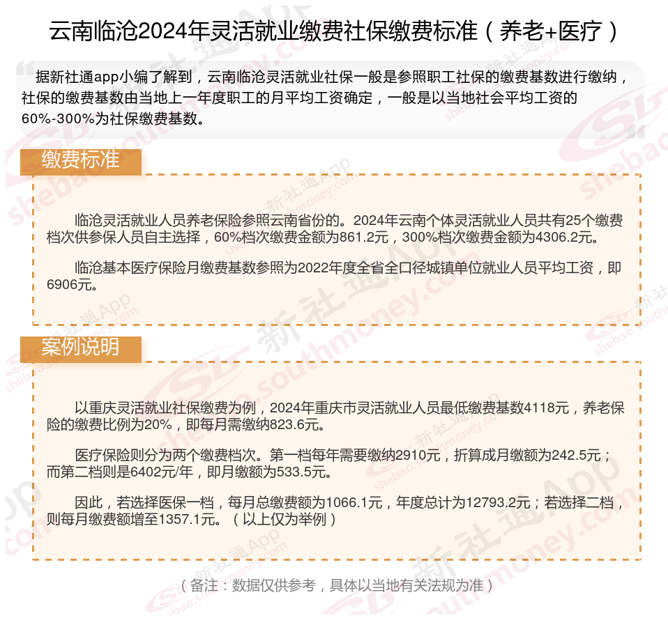 一、2024年云南临沧灵活就业社保缴费基数、比例最新消息