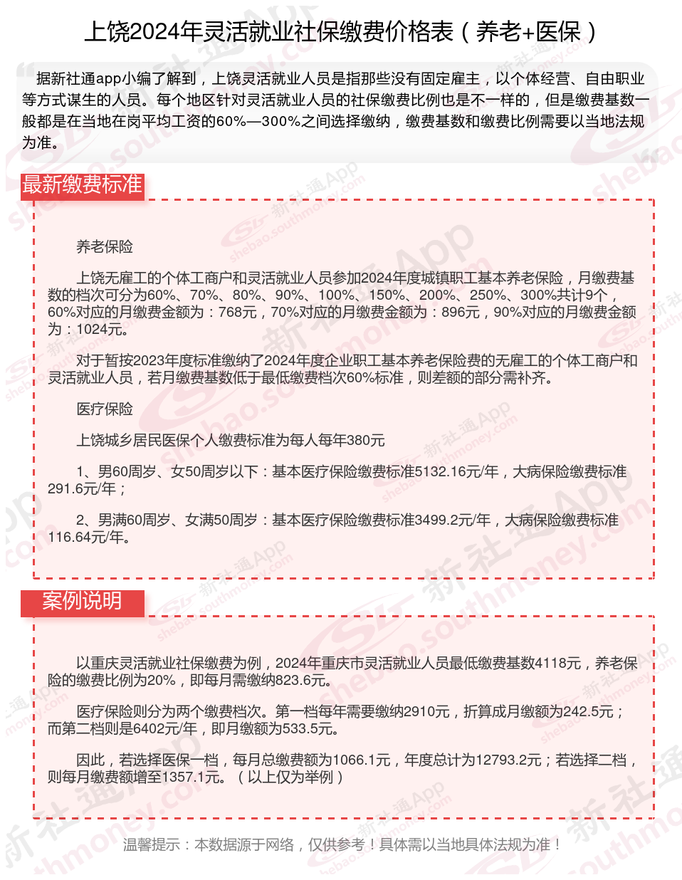 二、上饶2024年灵活就业社保缴费基数、比例最新消息