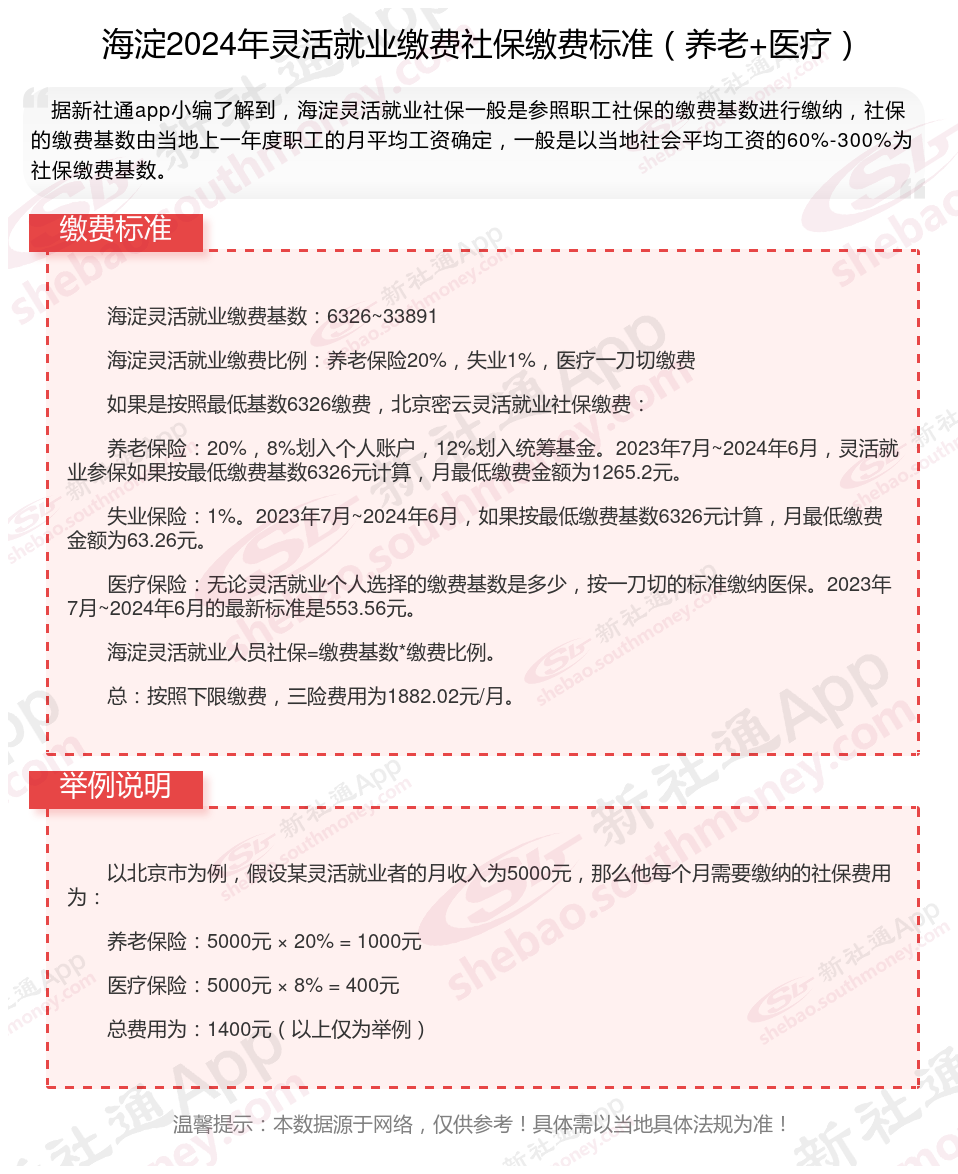 一、2024年海淀灵活就业社保缴费基数、比例最新消息