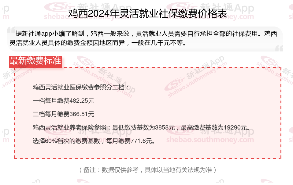 二、鸡西2024年灵活就业社保缴费基数及比例最新消息