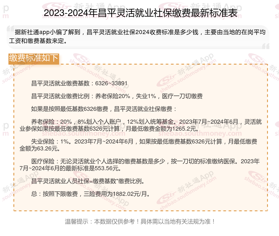 一、2024年昌平灵活就业社保缴费标准表 昌平灵活就业社保多少钱一个月?