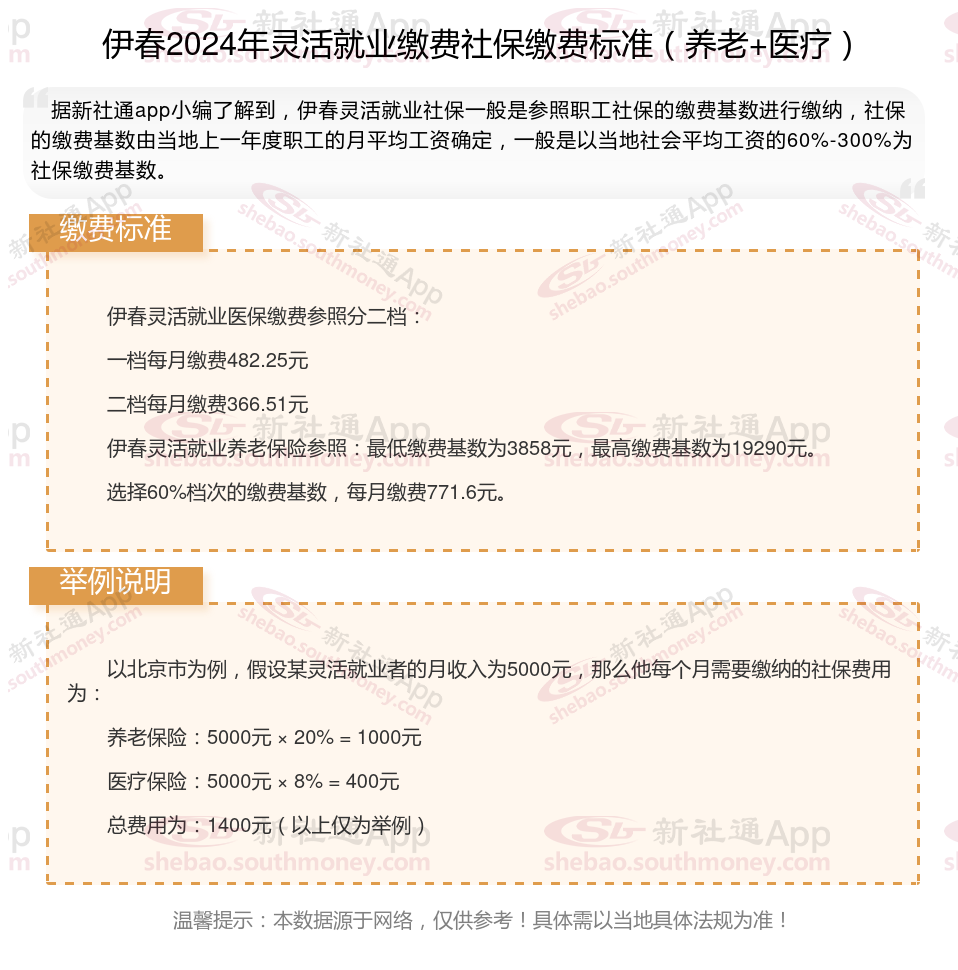 二、伊春2024年灵活就业社保缴费基数及比例最新消息