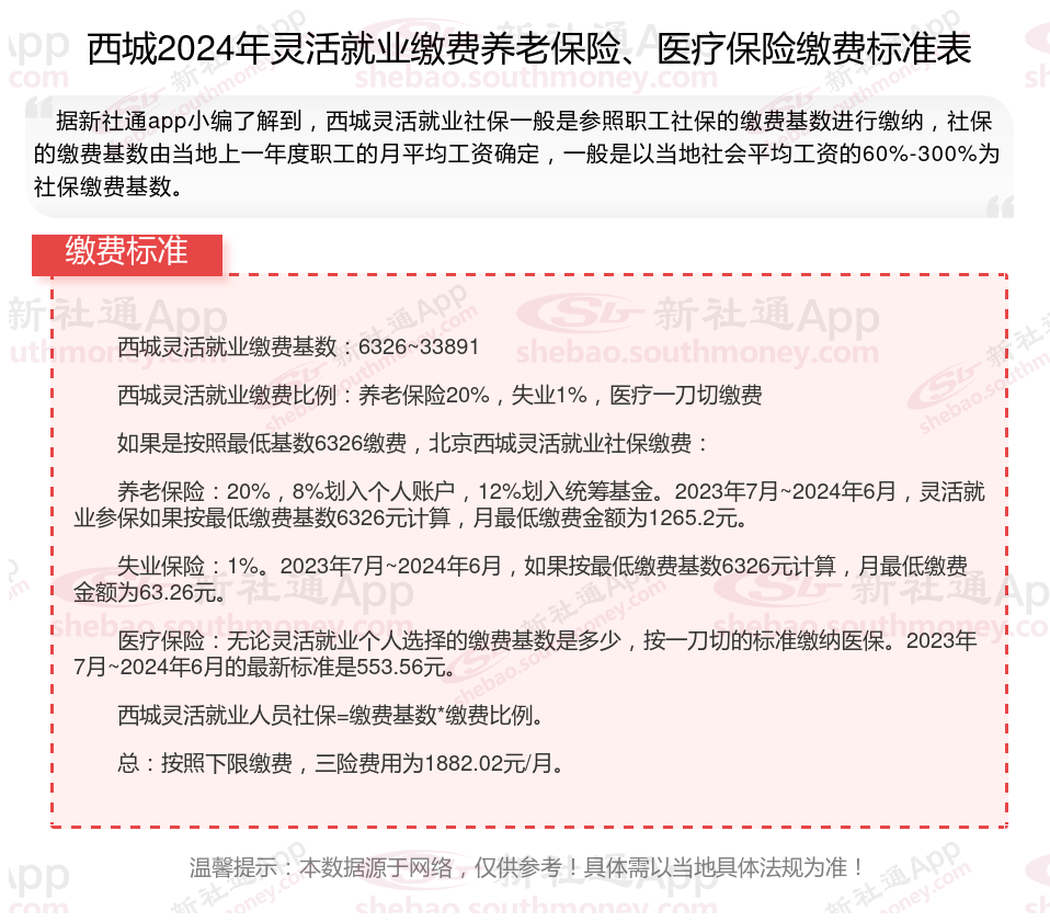 二、2024年西城灵活就业社保缴费标准表 西城灵活就业社保多少钱一个月?