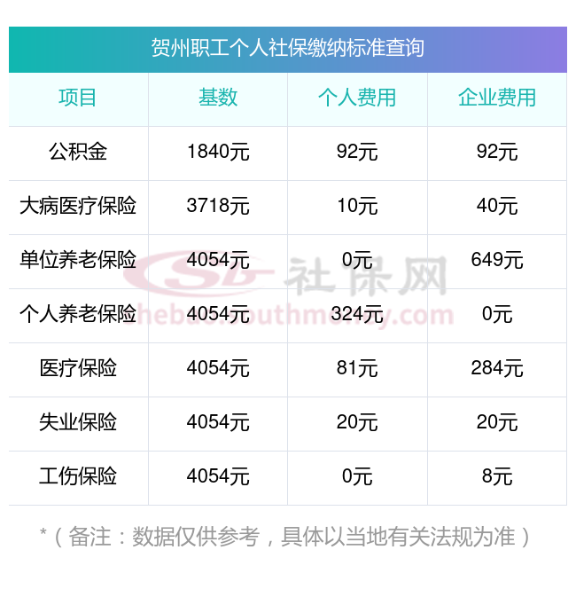 据新社通app小编了解到,2023-2024年贺州社保缴费基数参照为3579.00,贺州社保缴费明细如下: