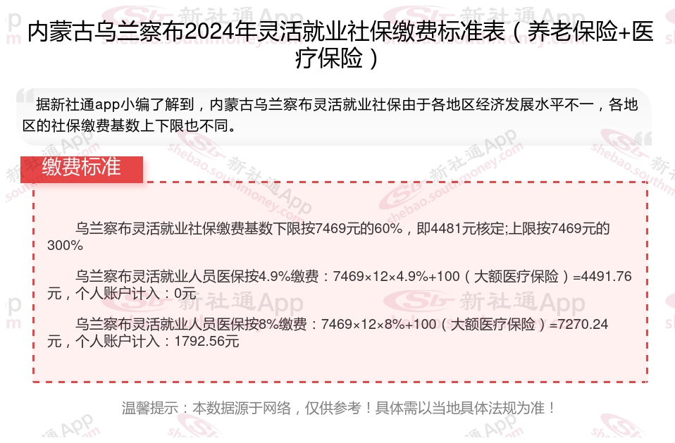 一、2024年内蒙古乌兰察布灵活就业社保缴费基数、比例最新消息