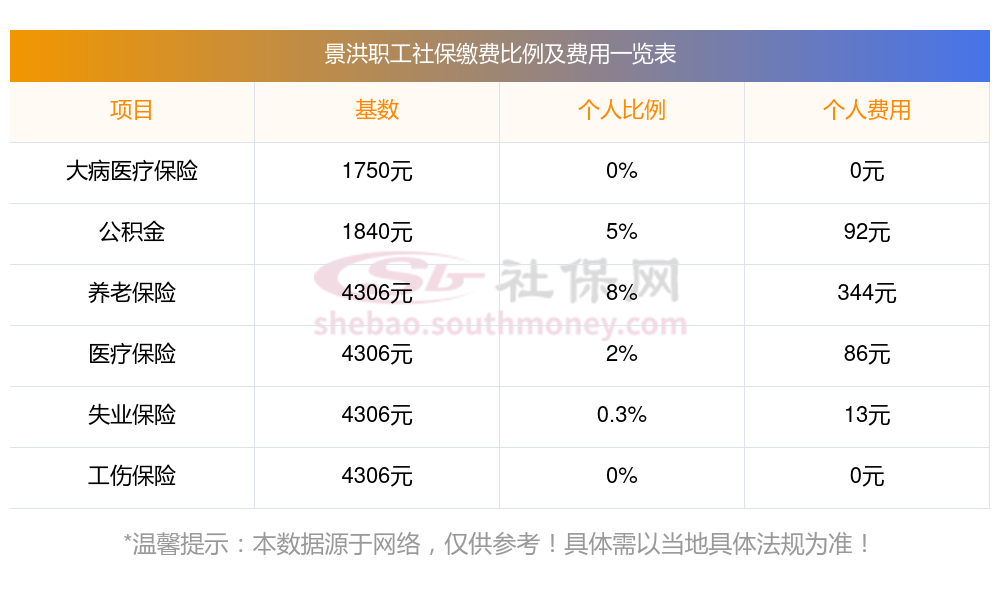 据新社通app小编了解到,2023-2024年景洪社保缴费基数参照为3579.00,景洪社保缴费明细如下: