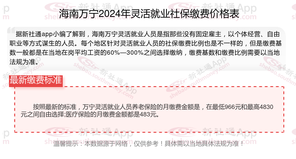 一、海南万宁灵活就业社保缴费基数及比例最新消息