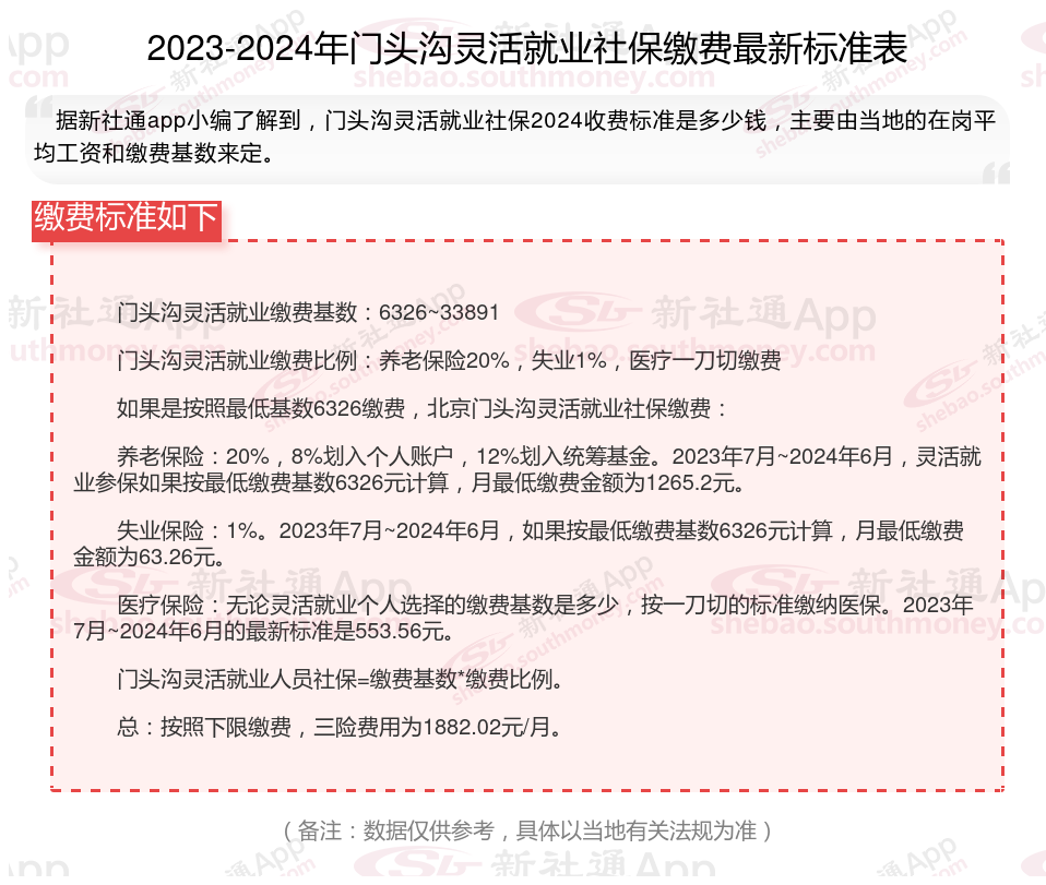 二、门头沟2024年灵活就业社保缴费基数、比例最新消息
