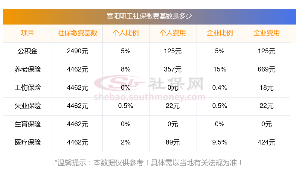 目前该富阳社保缴费基数最新参考为3579.00。(数据仅供参考)
