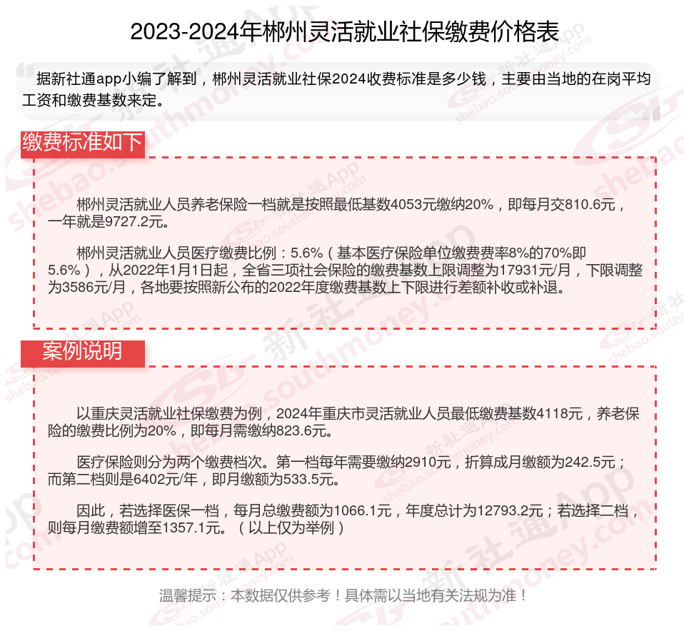 一、2024年郴州灵活就业社保缴费标准表 郴州灵活就业社保怎么交?