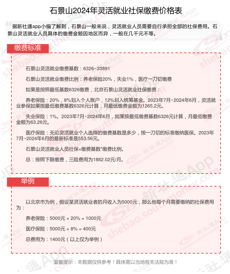一、2024年石景山灵活就业社保缴费标准表 石景山灵活就业社保多少钱一个月?