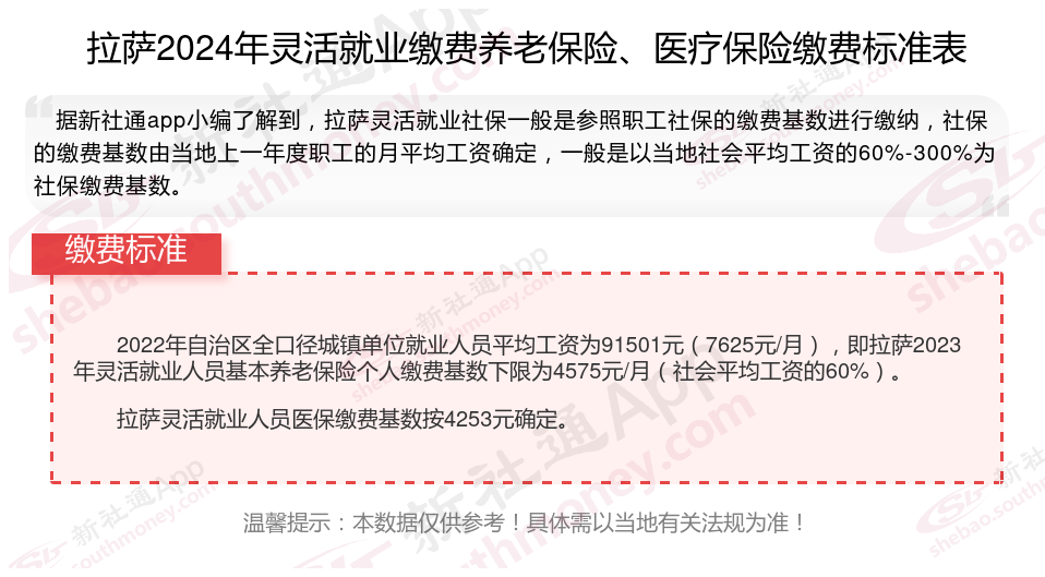 一、2024年拉萨灵活就业社保缴费标准表 拉萨灵活就业社保多少钱一个月?