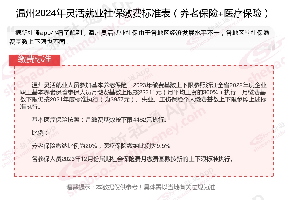 一、2024年温州灵活就业社保缴费基数、比例最新消息