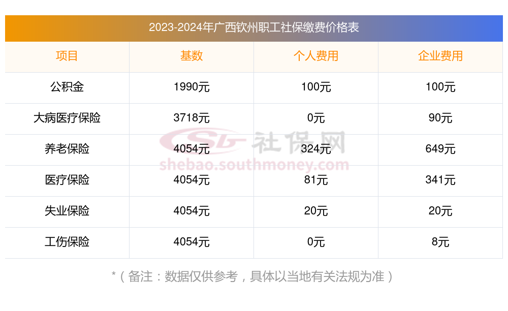 2024年广西钦州社保缴费标准最新是多少?据新社通app获悉,社保是为了保证劳动者在年老、失业、患病、工伤、生育而减少劳动收入时给予经济补偿的一项优惠方案。那你知道广西钦州社保缴费标准是什么样的吗?看看你的社保需要缴纳多少钱?下面随新社通app小编一起来看看广西钦州社保缴费标准详情。