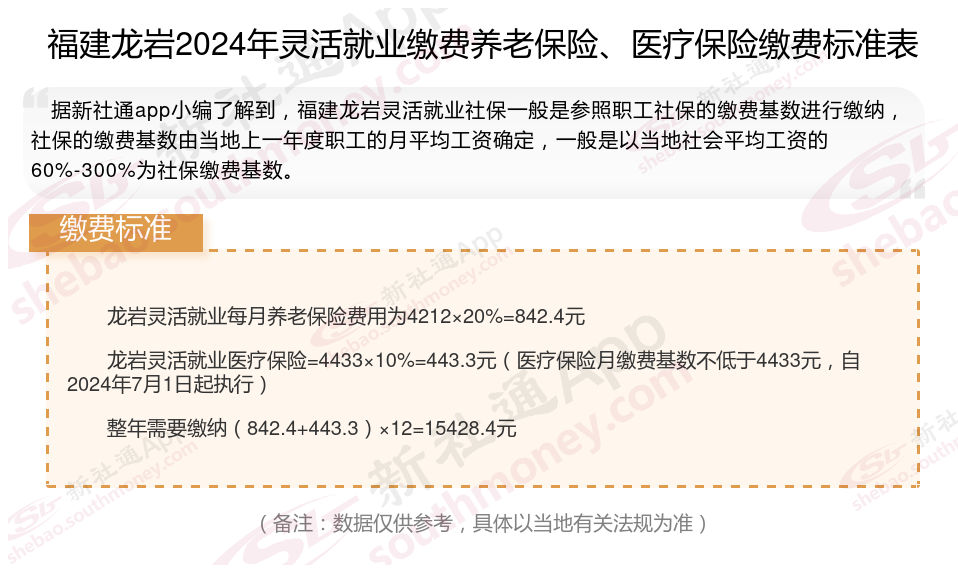 二、福建龙岩2024年灵活就业社保缴费基数及比例最新消息