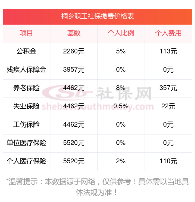 桐乡职工社保缴费多少钱?桐乡职工社保缴费基数最新参考为:3579.00,具体如下: