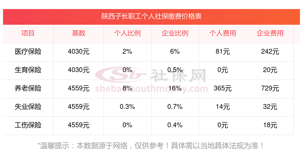 据新社通app小编了解到,2023-2024年陕西子长社保缴费基数参照为3579.00,陕西子长社保缴费明细如下: