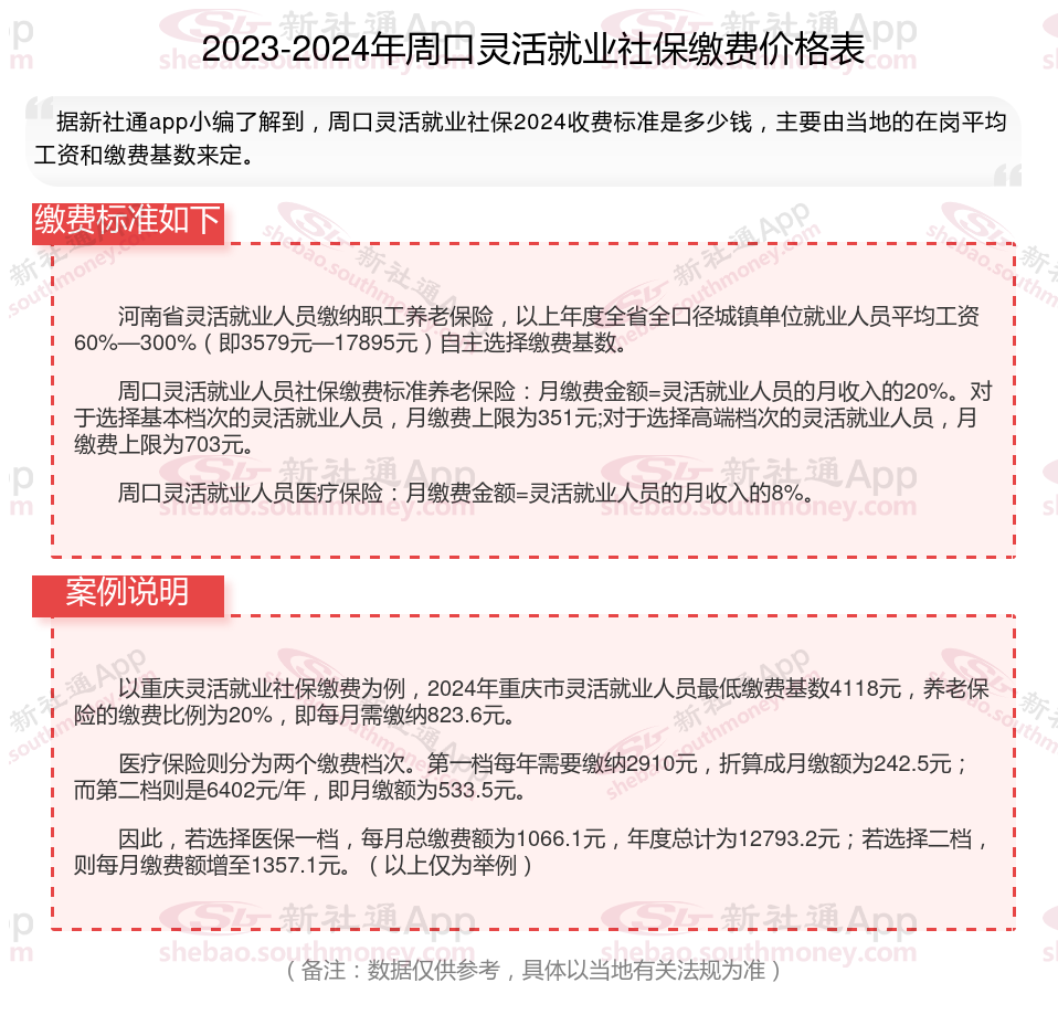 二、周口2024年灵活就业社保缴费基数及比例最新消息