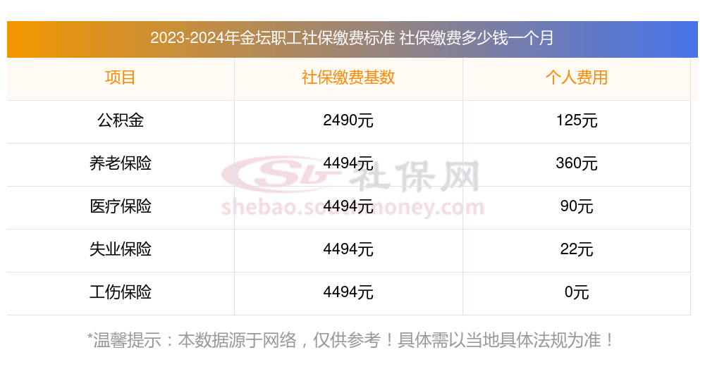 据新社通app小编了解到,2023-2024年金坛社保缴费基数参照为3579.00,金坛社保缴费明细如下: