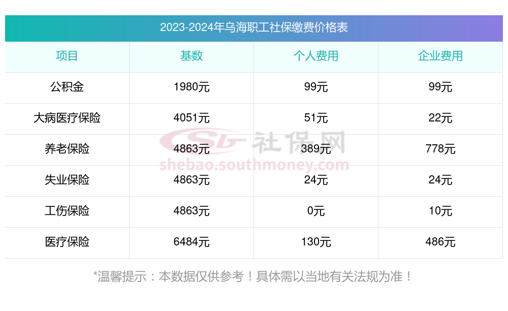据新社通app小编了解到,2023-2024年乌海社保缴费基数参照为3579.00,乌海社保缴费明细如下: