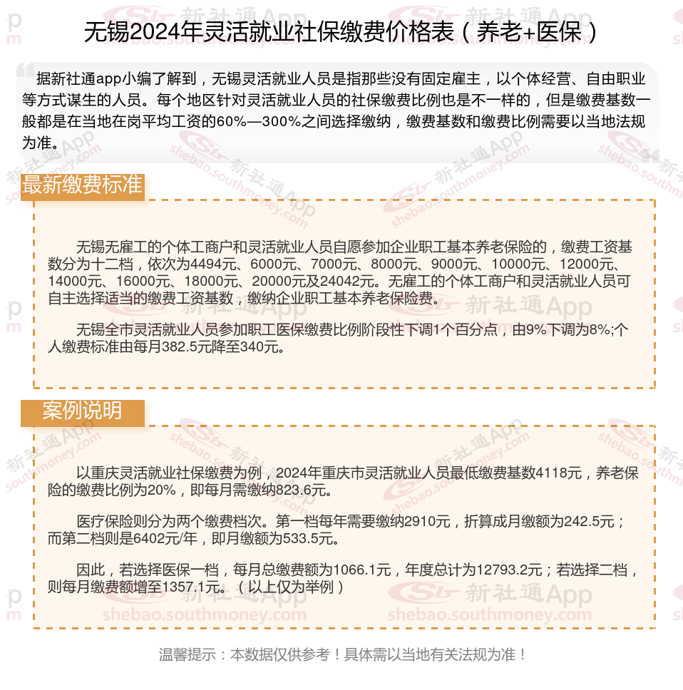 二、无锡2024年灵活就业社保缴费基数、比例最新消息