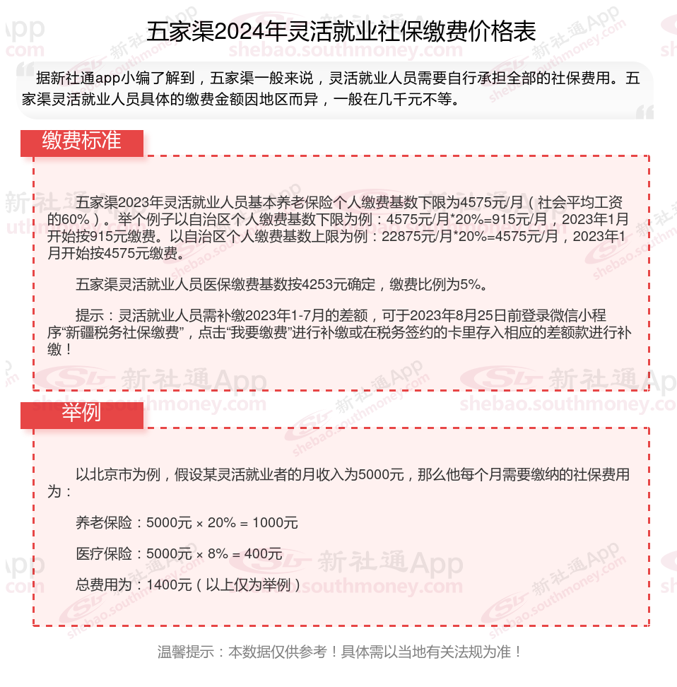 二、2024年五家渠灵活就业社保缴费标准表,最新如下: